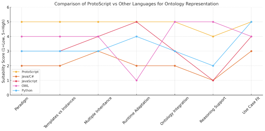 Traditional methods like RDF or OWL require explicit, static schemas and struggle to dynamically adapt to new information. ProtoScript’s Prototype-based approach, however, treats ontological elements as flexible, runtime-adaptable structures. Prototypes inherently support multiple inheritance, semantic blending, and runtime reconfiguration, making it seamless to integrate and harmonize diverse ontologies like ICD-10, SNOMED CT, WordNet, and clinical terminologies. This flexibility allows Buffaly to incrementally and dynamically expand the ontology, reflecting real-world complexities and continuous medical knowledge evolution, something rigid schema-based approaches cannot easily achieve.