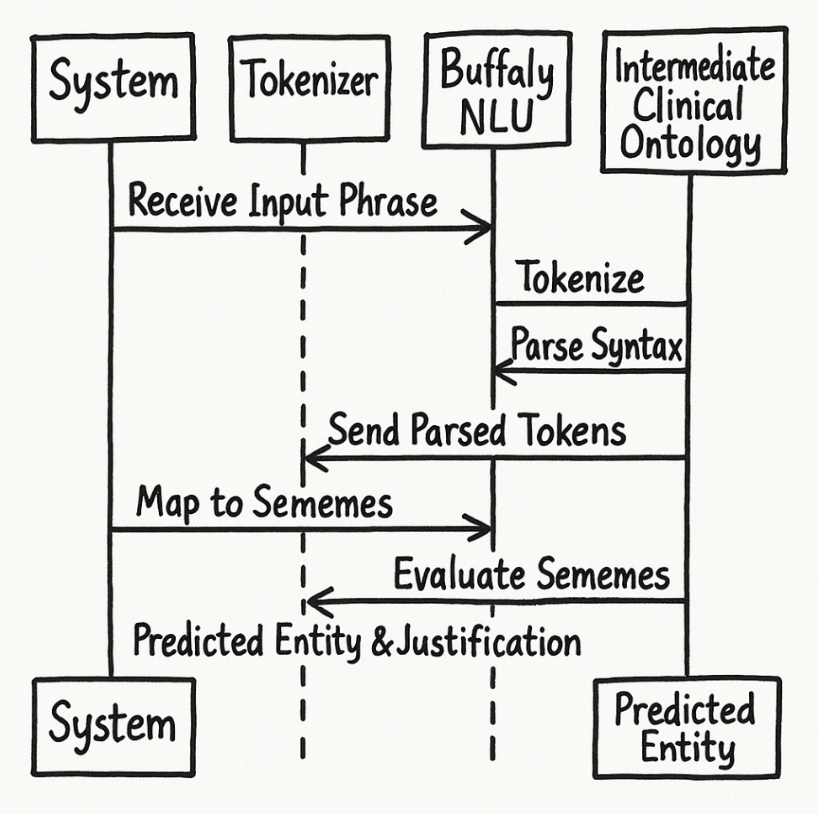 This structured workflow ensures Buffaly predictions remain accurate, interpretable, and semantically precise, leveraging its unique neurosymbolic framework for robust, transparent clinical language understanding and mapping.